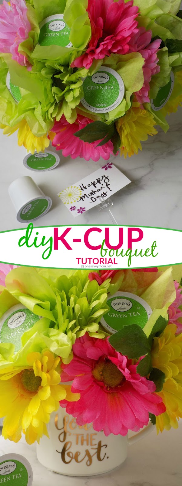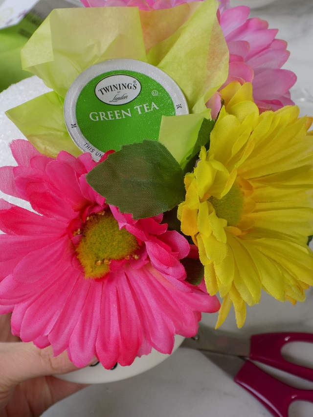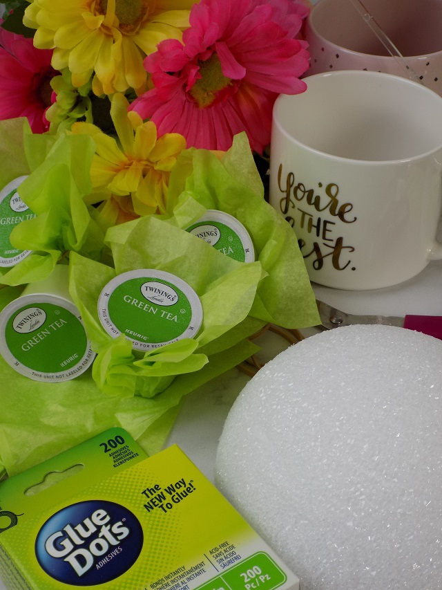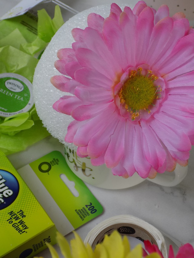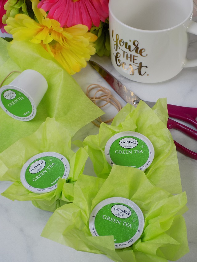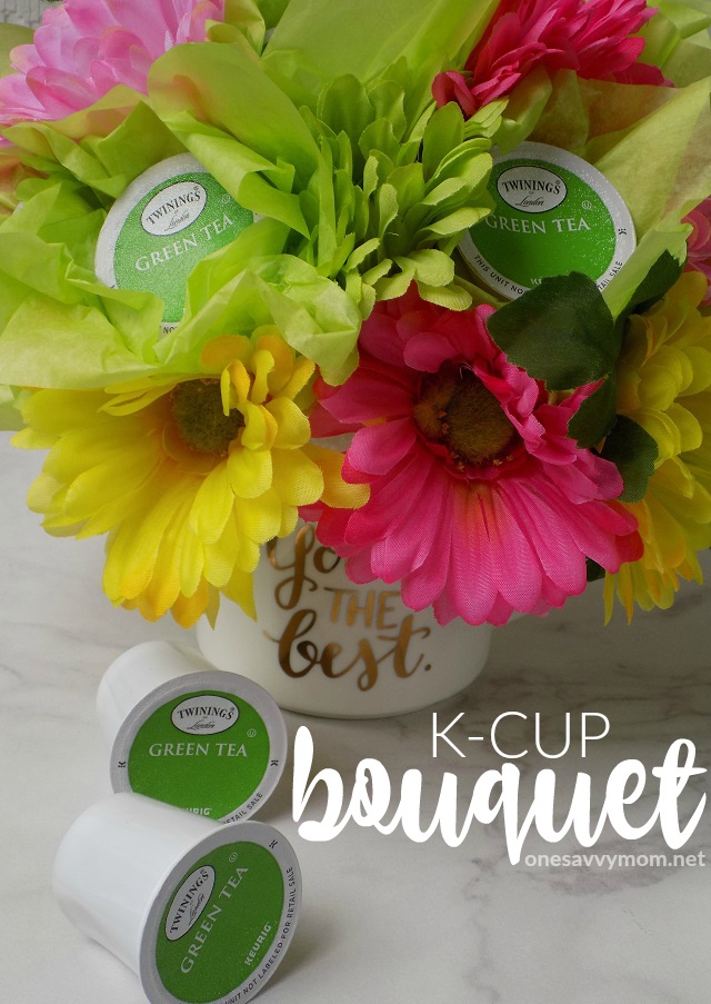 These are so simple to make, and only take about 15-20 minutes to assemble once you have all of your supplies ready. I made this arrangement with Twinings Green Tea, and big bright blooms. I absolutely love how it turned out! In total I assembled 10 of these cute little K-Cup Bouquet flower arrangements for all of the special moms in my life, and I can't wait to gift them this Mothers Day.