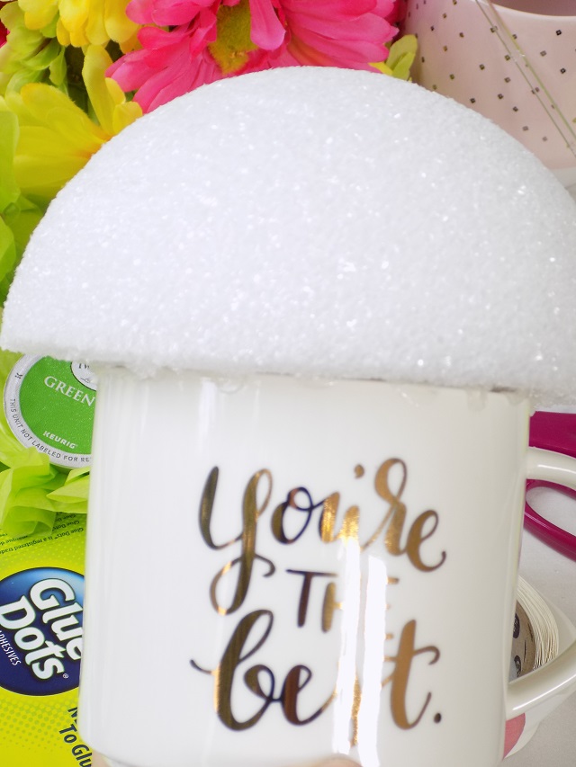 - Next, grab your Glue Dots and your mug. Place 12-14 glue dots around the rim of mug (don't worry, they remove easily and won't leave any sticky residue behind).