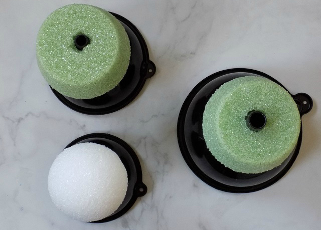 - Now it's time to assemble your funnels. Start with the largest funnel in the set, and press the foam down over the funnel spout (refer to imagery above from my Dollar Tree Funnel Set Angel tutorial ). Repeat this step, with a second piece of circular foam on the medium sized funnel in the set.
